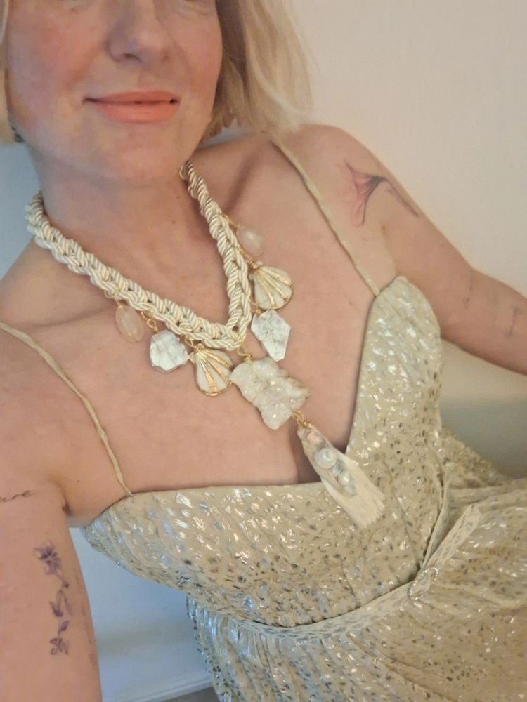 My pieces combine colour, gold and silver toned materials, high quality findings and charms, vintage and preloved treasure, healing natural stones and crystals, shells, sparkly gorgeousness and are wrapped in sustainable packaging.